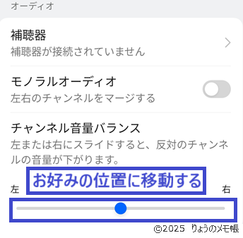 これで左右の音量バランスを変更できます。