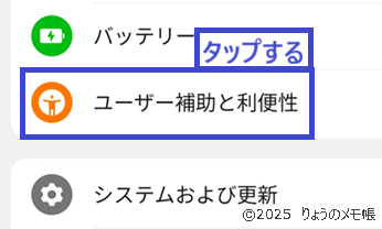 ②「ユーザー補助と利便性」をタップします。