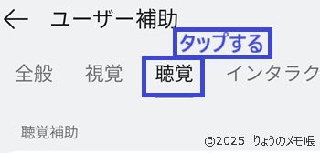 ④「聴覚」にある「オーディオ」の「チャンネル音量バランス」をお好みの位置に移動します。