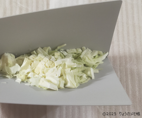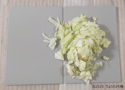 フライパンで野菜炒めを作るために、キャベツを切ってみました。