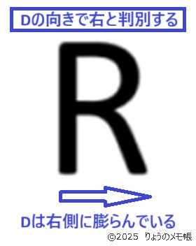 Rを耳の形に見立てて、右に向いているので右側の耳と連想して覚えました。