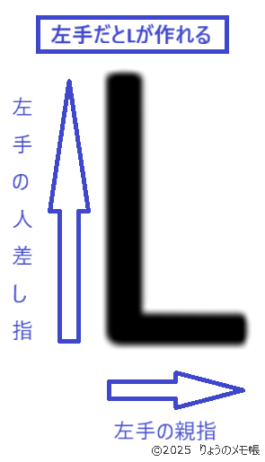 Lは左手の親指と人差し指でLの形を作れるので、左と覚えています。